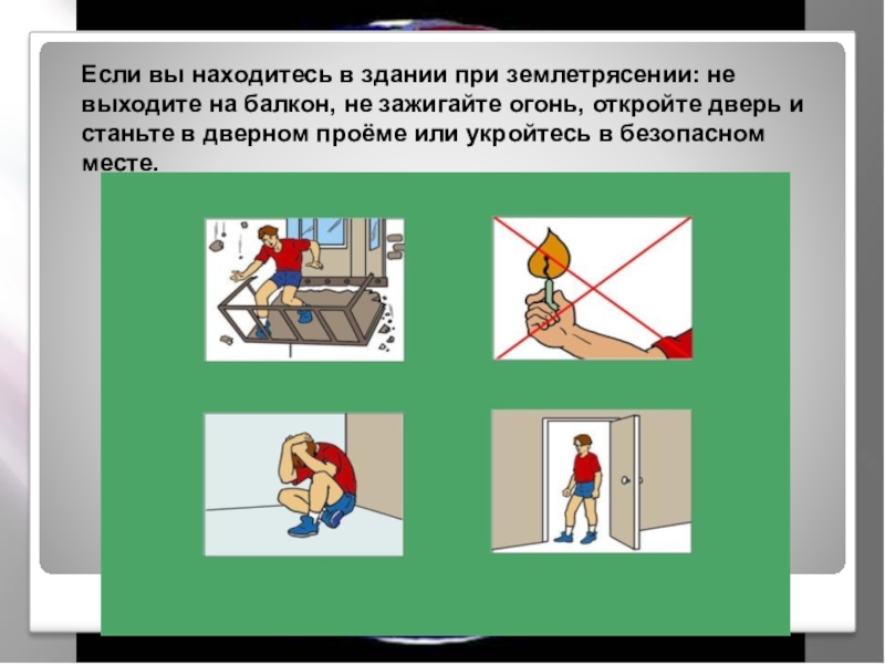Слайд 53Если вы находитесь в здании при землетрясении: не выходите на балкон,