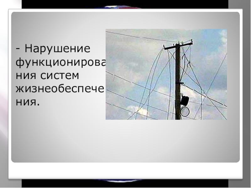 Слайд 32- Нарушение функционирования систем жизнеобеспечения.