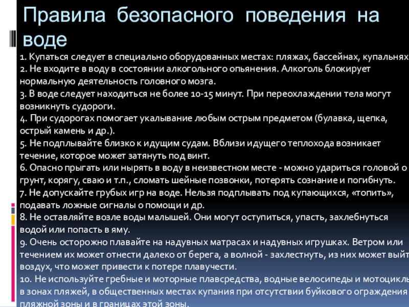 необходимо строго соблюдать ряд простых правил поведения на воде.