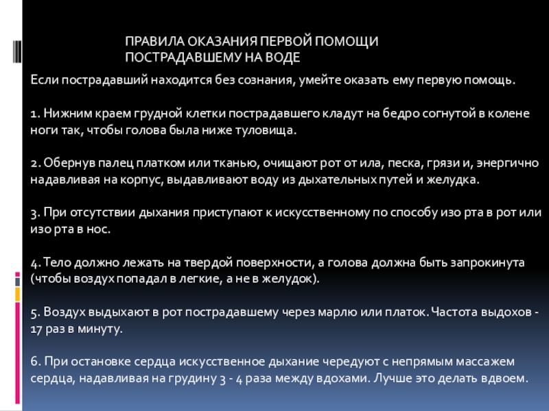 Слайд 4ПРАВИЛА ОКАЗАНИЯ ПЕРВОЙ ПОМОЩИ ПОСТРАДАВШЕМУ НА ВОДЕ