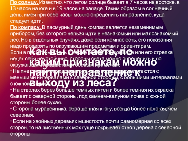 Как вы считаете, по каким признакам можно найти направление к выходу из леса?