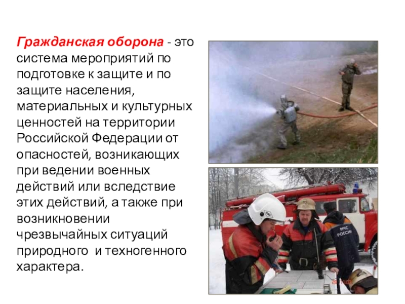 Слайд 18Гражданская оборона - это система мероприятий по подготовке к защите и
