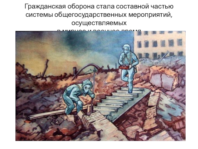 Слайд 13Гражданская оборона стала составной частью системы общегосударственных мероприятий, осуществляемых
