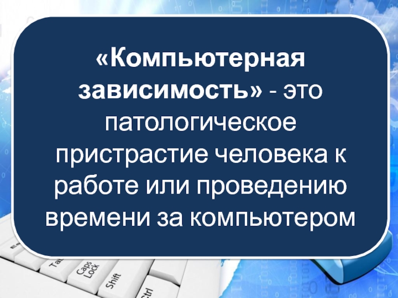 «Компьютерная зависимость» - это патологическое пристрастие человека к работе или проведению времени за компьютером