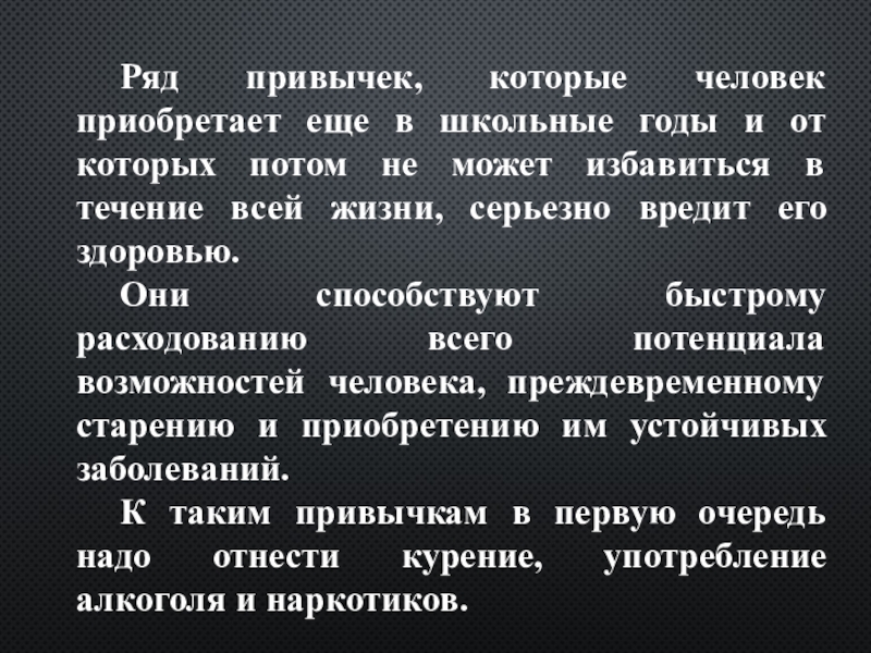 Слайд 2 Ряд привычек, которые человек приобретает еще в школьные годы и от