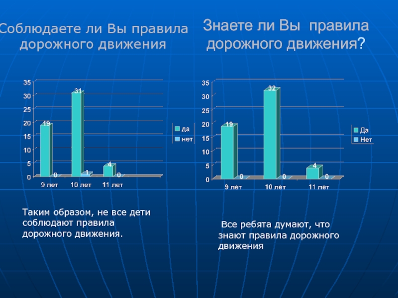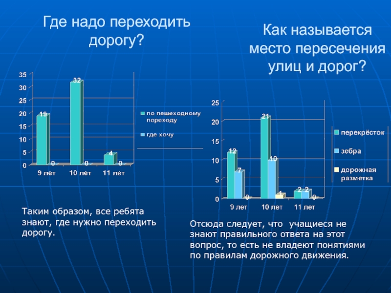 Отсюда следует, что учащиеся не знают правильного ответа на этот вопрос, то есть не владеют понятиями по правилам дорожного движения.