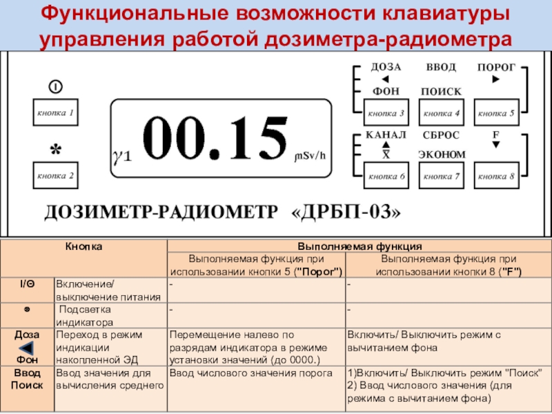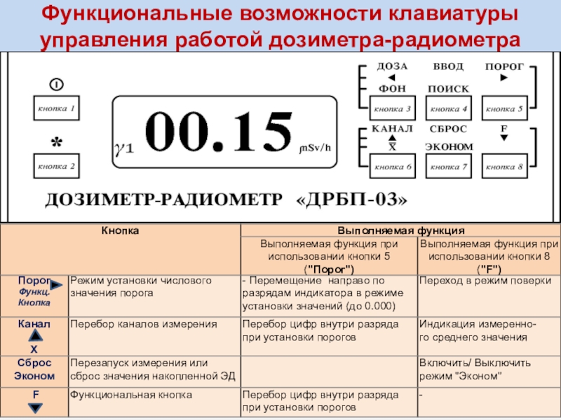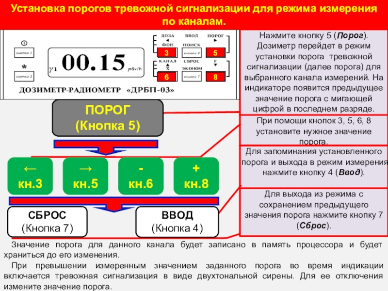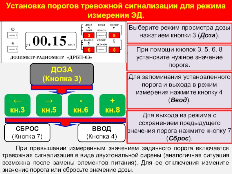 Нажатие кнопки 7 «Сброс» производит сброс значения накопленной дозы;