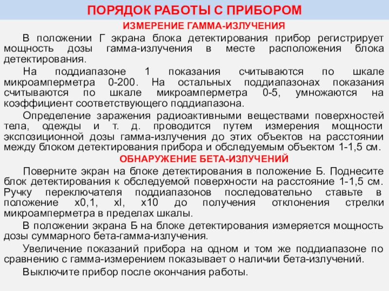 Диапазон измерения гамма-излучения - от 0,05 до 200 мРад/ч в диапазоне энергий от 0,084 до 1,25 МэВ