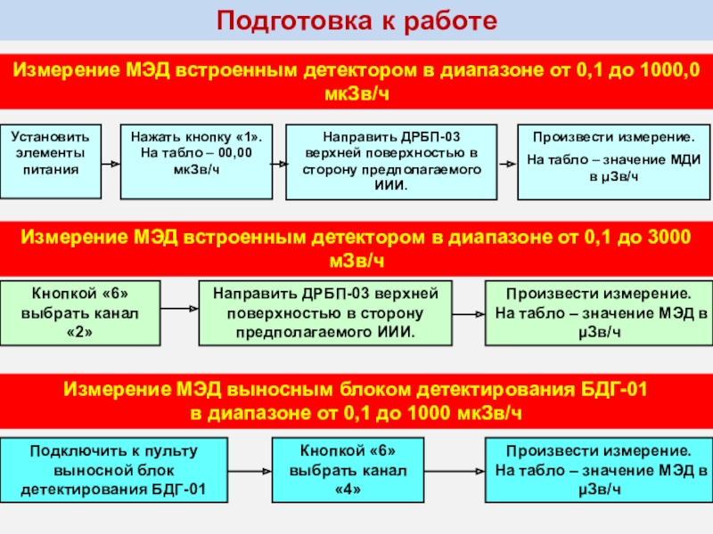 Измерение МЭД встроенным детектором в диапазоне от 0,1 до 3000 мЗв/ч