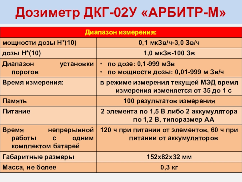 Дозиметр гамма излучения ДКГ-02У «Арбитр» предназначен для :