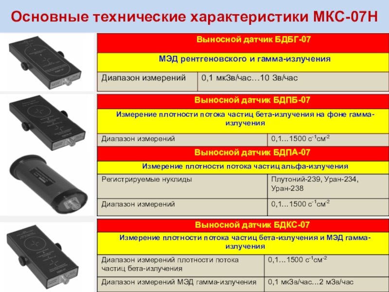 внешние блоки детектирования БДПА-07, БДПБ-07, БДБГ-07, БДКС-07;