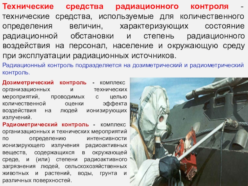 Радиационный контроль подразделяется на дозиметрический и радиометрический контроль.