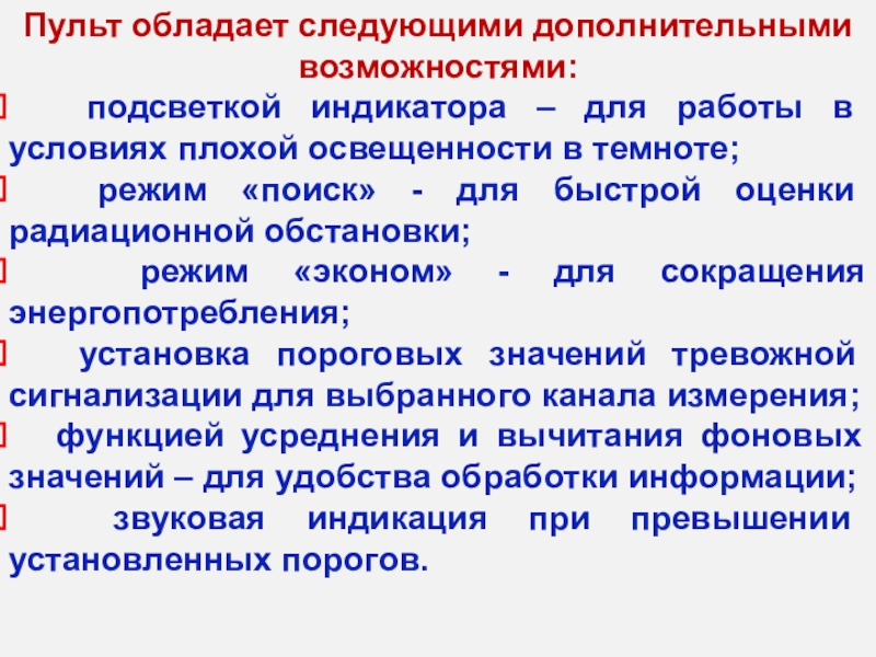 Диапазон индикации бета-излучения - от 50 до 50.000 бета-част./мин.см2 с энергией 2,27МэВ