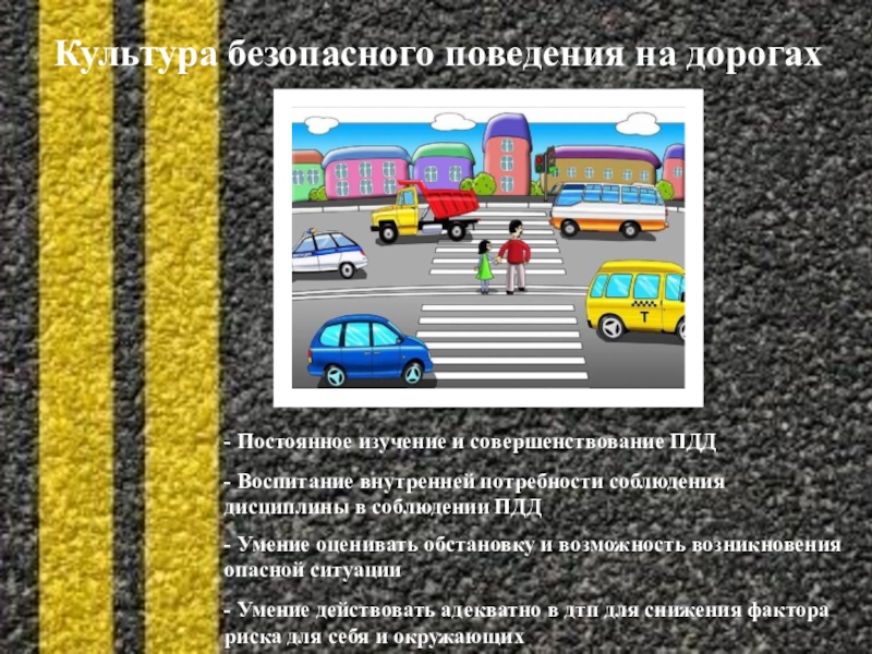 - Умение действовать адекватно в дтп для снижения фактора риска для себя и окружающих