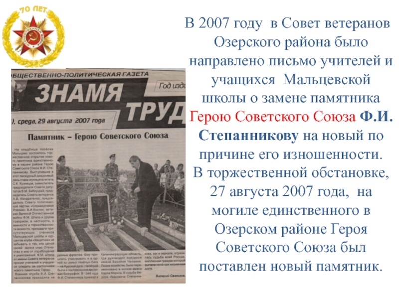 В 2008 году, именем Героя названа Мальцевская основная школа