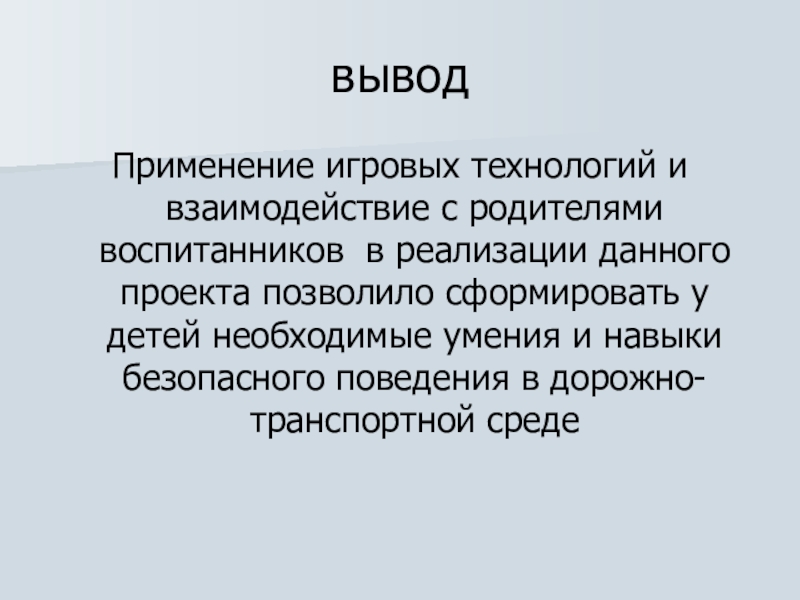 проекта позволило сформировать у детей необходимые умения и навыки безопасного поведения в дорожно-транспортной среде