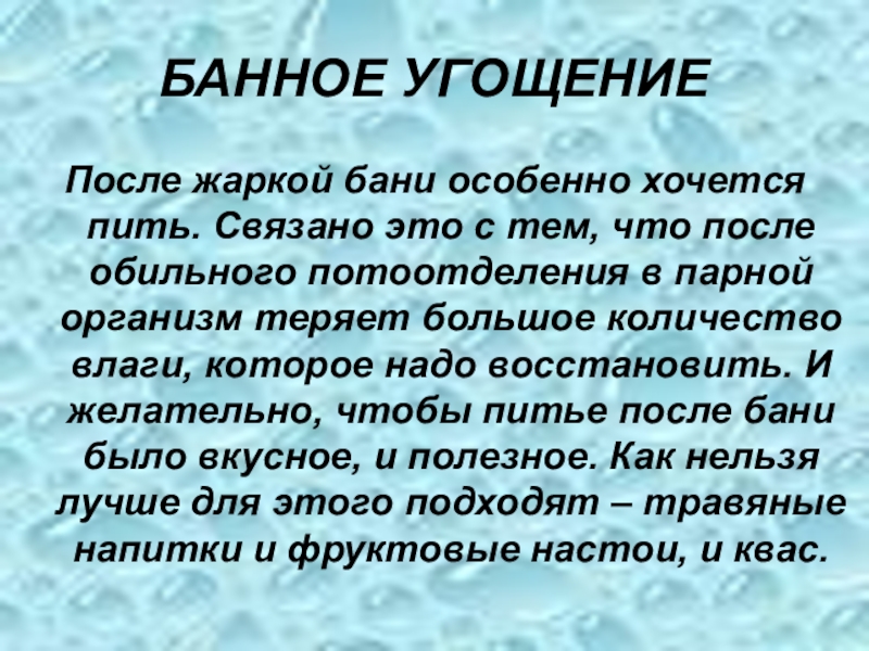 После жаркой бани особенно хочется пить. Связано это с