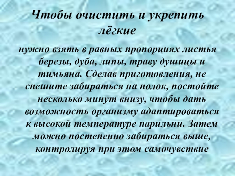 Слайд 14Чтобы очистить и укрепить лёгкие