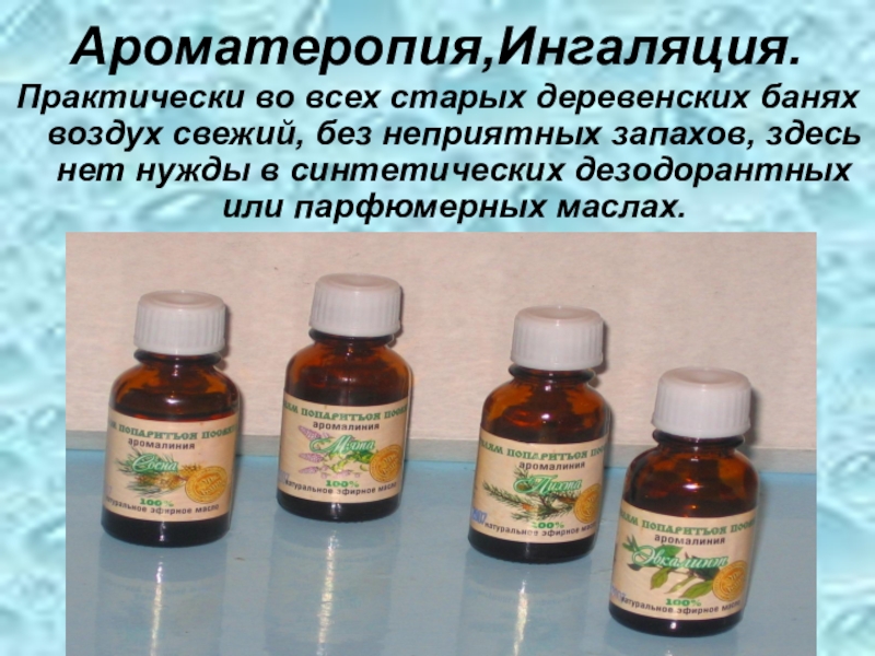 Слайд 21Ароматеропия,Ингаляция.