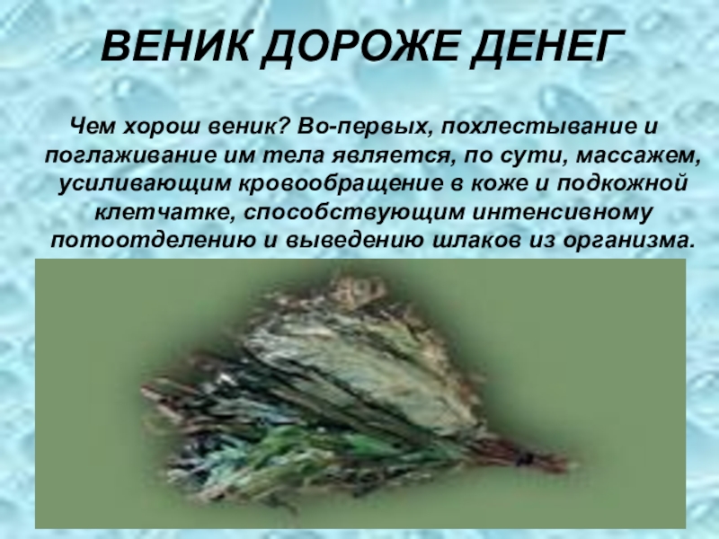 Слайд 16ВЕНИК ДОРОЖЕ ДЕНЕГ
