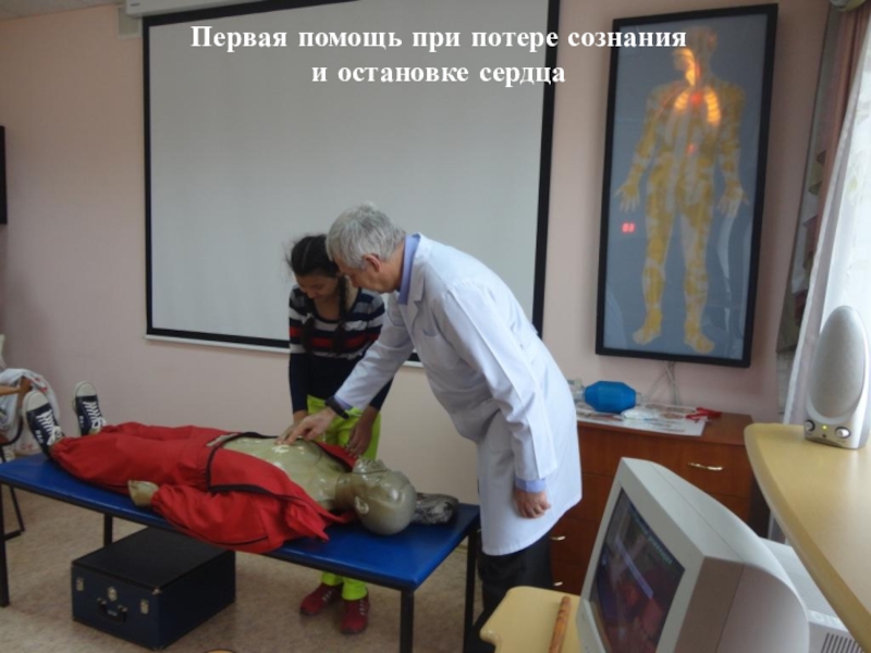 Искусственное поддержание кровообращения путём наружного массажа сердца.