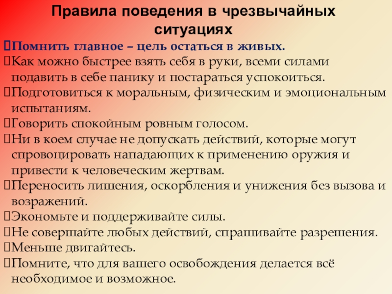 Вопрос: Вы знаете как вести себя, если вас захватили в