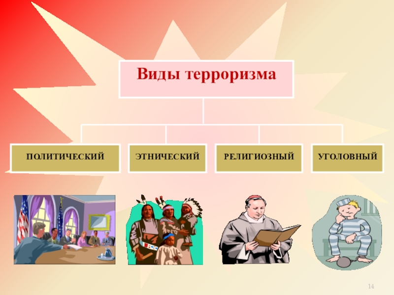 Слайд 16Этнический терроризм - терроризм, имеющий целью достижение национальной независимости. Эту разновидность