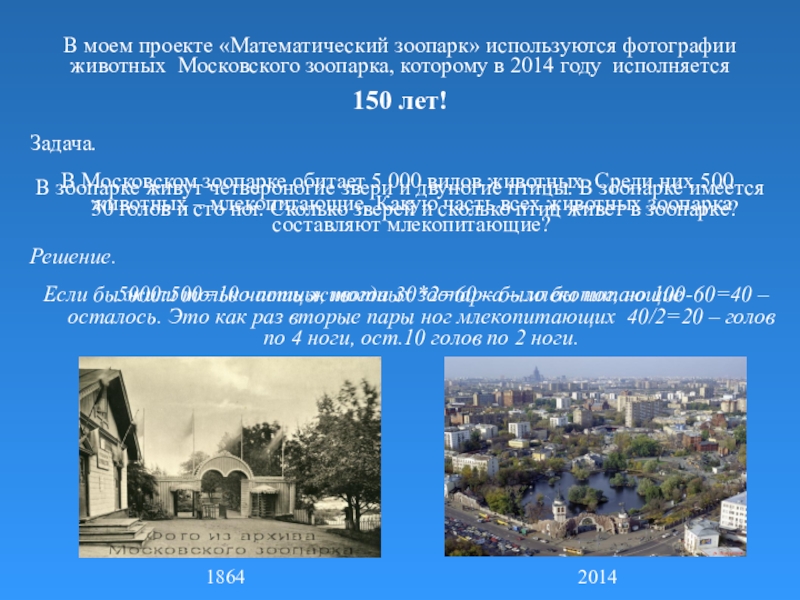 В Московском зоопарке обитает 5 000 видов животных. Среди них 500 животных – млекопитающие. Какую часть всех животных зоопарка составляют млекопитающие?