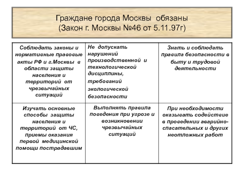 Закон города Москвы от 5.11. 1997 г. № 46,