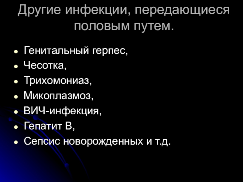 Слайд 7Другие инфекции, передающиеся половым путем.