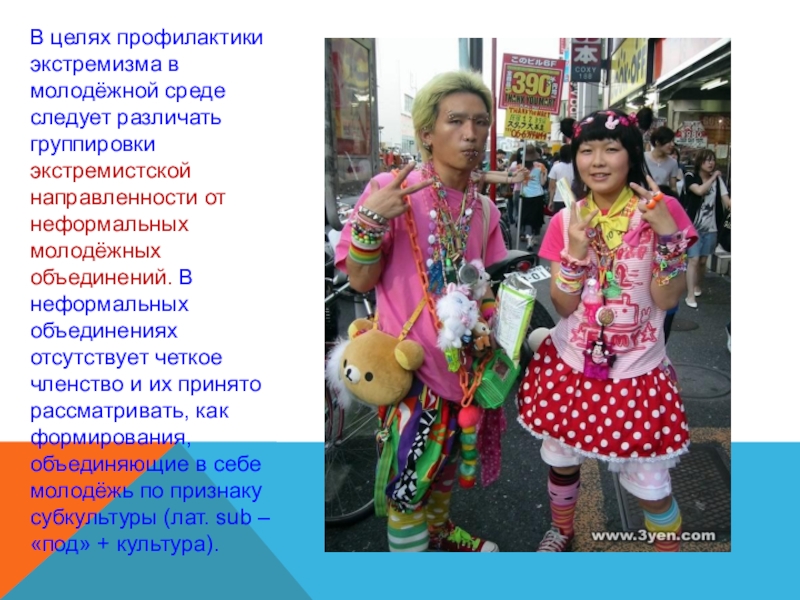 Слайд 7В целях профилактики экстремизма в молодёжной среде следует различать группировки экстремистской