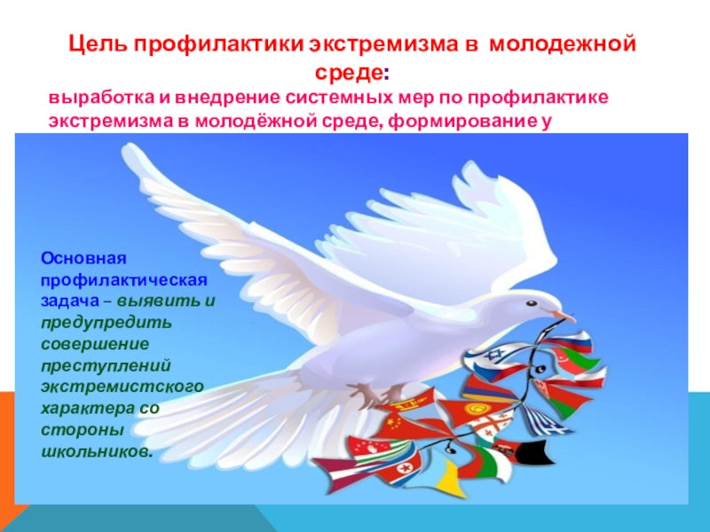 Основная профилактическая задача – выявить и предупредить совершение преступлений экстремистского характера со стороны школьников.