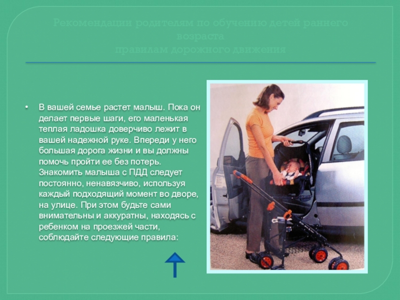 Уважаемые мамы и папы! Вы являетесь образцом поведения. Вы — объект любви и подражания для ребенка. Это необходимо помнить всегда и тем более, когда делаете шаг на проезжую часть дороги вместе с малышом. Чтобы Ваш ребенок не попал в беду, воспитывайте у него уважение к правилам дорожного движения терпеливо, ежедневно, ненавязчиво.