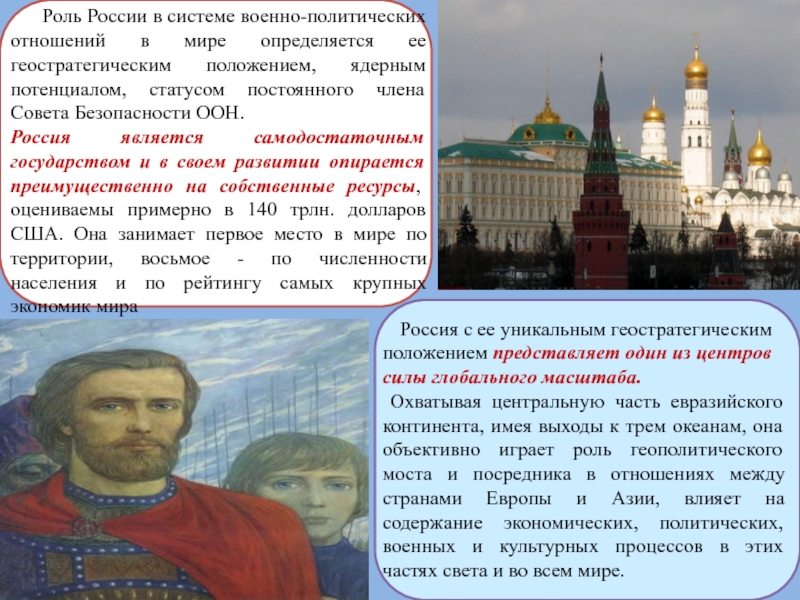 Россия с ее уникальным геостратегическим положением представляет один из центров силы глобального масштаба.