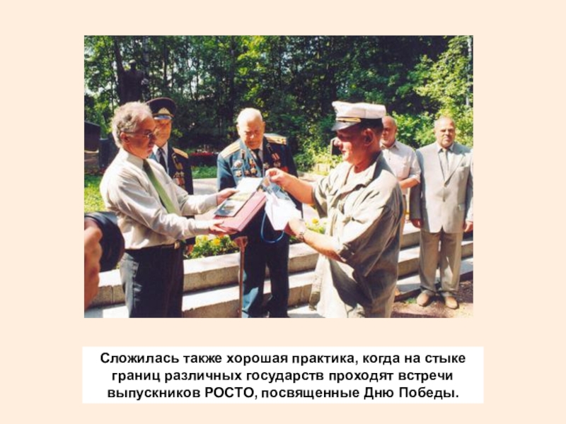 Слайд 5РОСТО проводит встречи с ветеранами войны. Регулярно встречаются выпускники Осоавиахима, которые