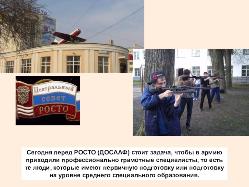 Слайд 14Сегодня перед РОСТО (ДОСААФ) стоит задача, чтобы в армию приходили профессионально
