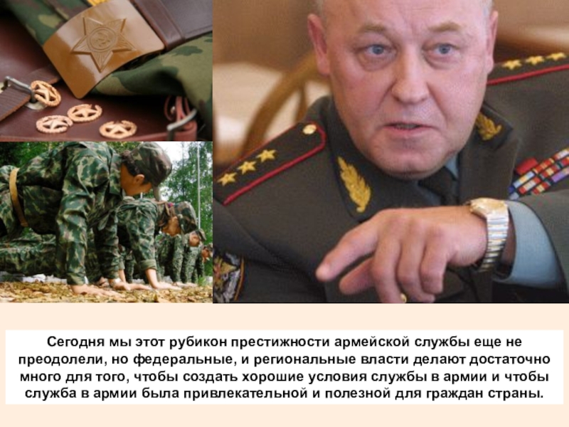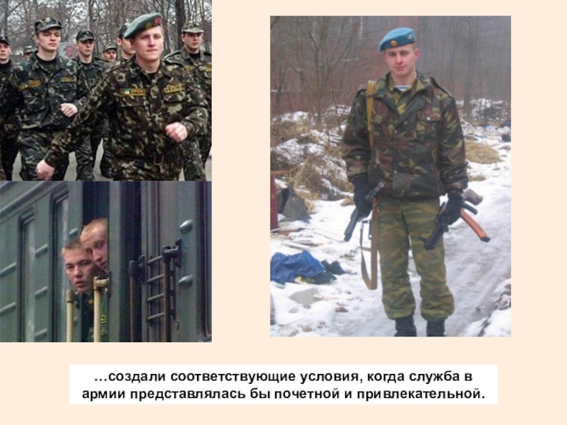 Слайд 21…создали соответствующие условия, когда служба в армии представлялась бы почетной и