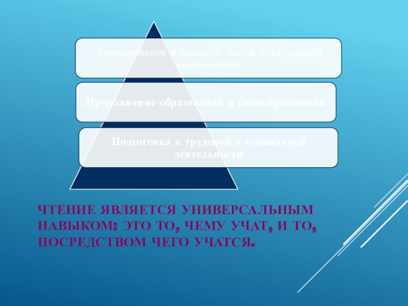 Слайд 2Чтение является универсальным навыком: это то, чему учат, и то, посредством