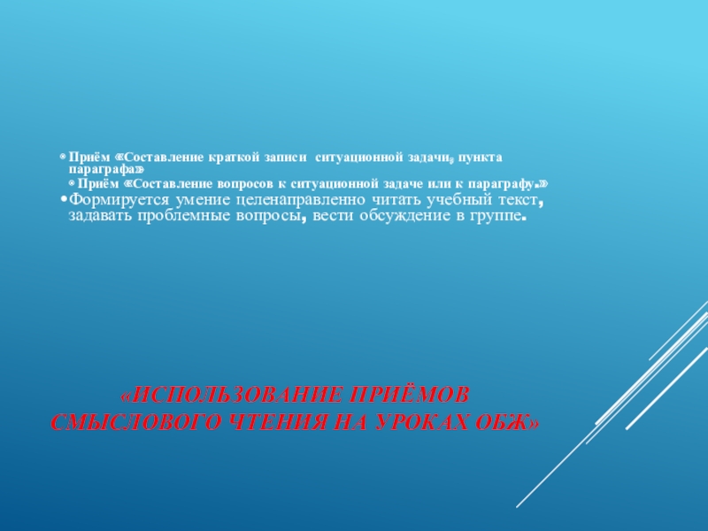 Слайд 7«Использование приёмов смыслового чтения на уроках ОБЖ»