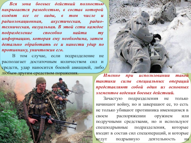 Именно при использовании такой тактики силы специальных операций представляют собой один из основных элементов ведения боевых действий.