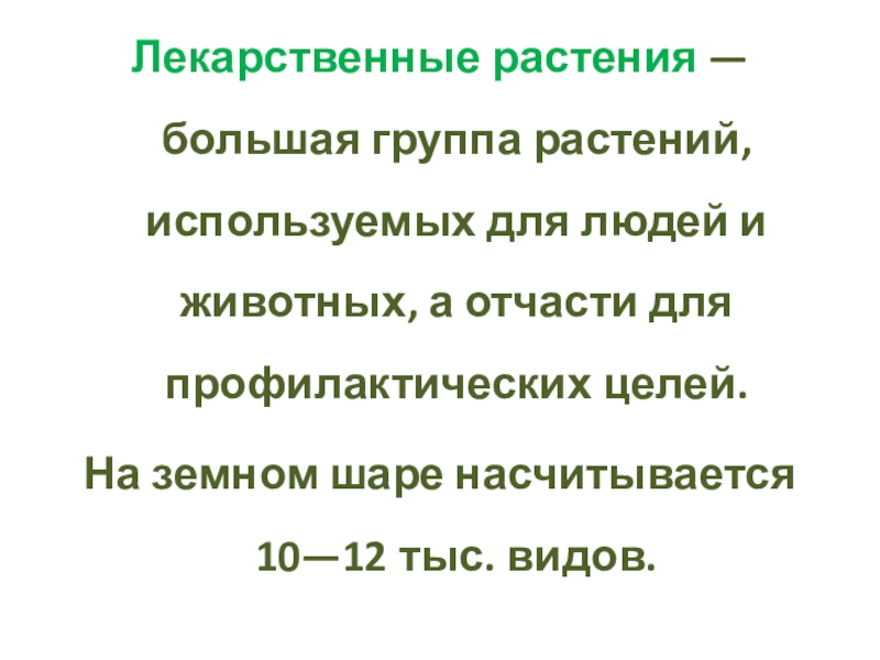 Слайд 2Лекарственные растения — большая группа растений, используемых для людей и животных, а