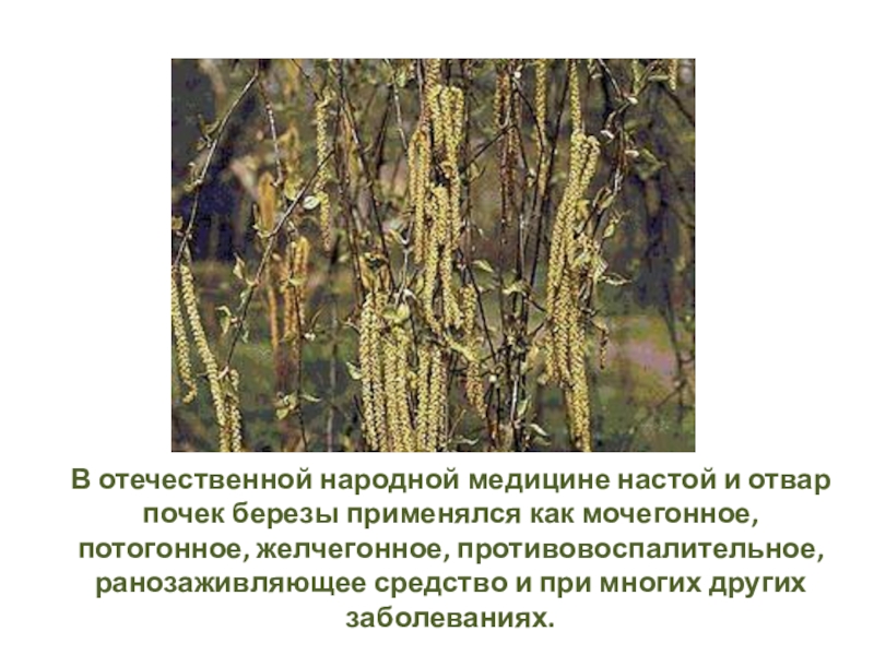 Слайд 7В отечественной народной медицине настой и отвар почек березы применялся как