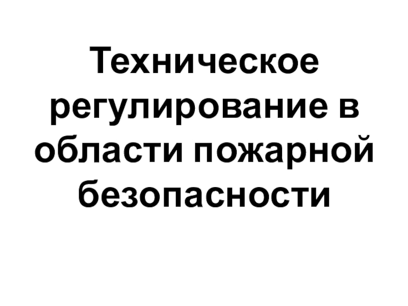 Презентация, доклад на тему Техническое регулирование в области пожарной безопасности