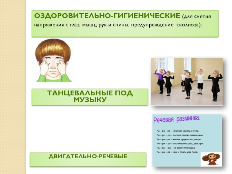 Оздоровительно-гигиенические (для снятия напряжения с глаз, мышц рук и спины,