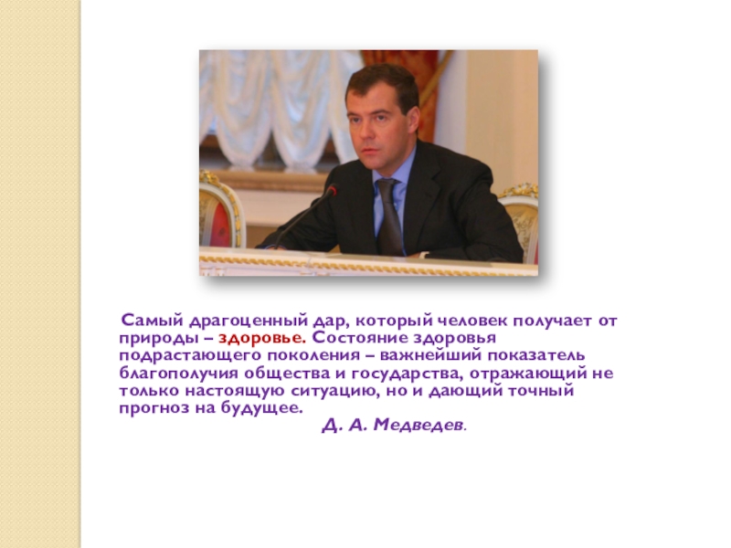 Слайд 19 Самый драгоценный дар, который человек получает от природы – здоровье.