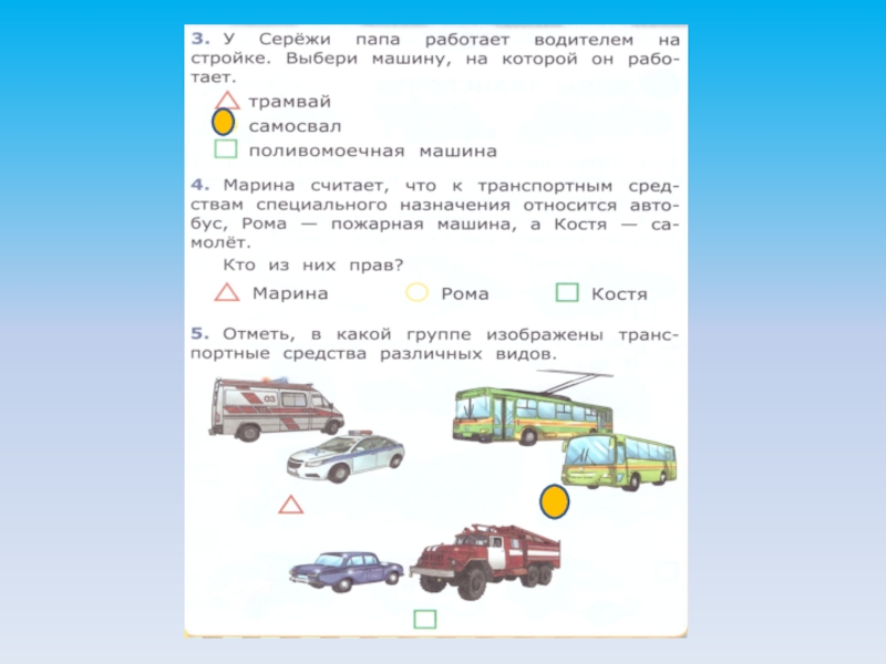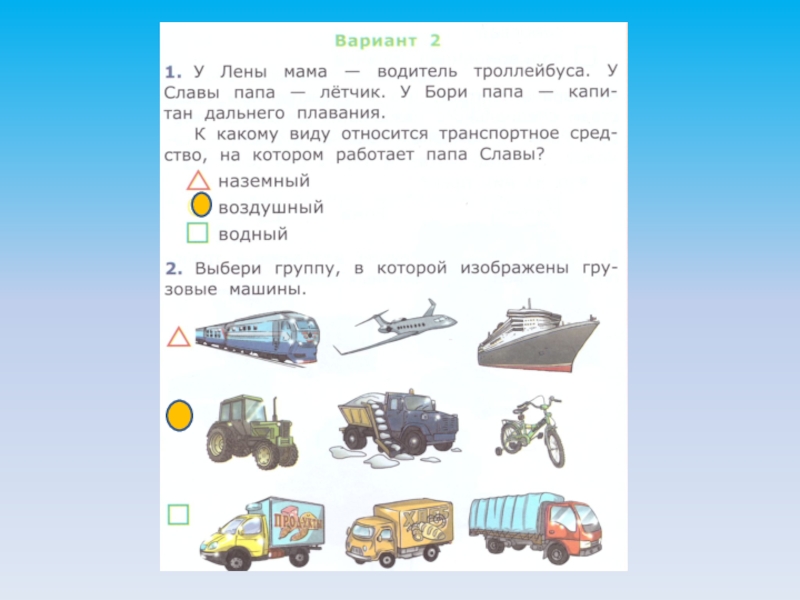 Презентация, доклад на тему Тест по теме: виды транспортных средств