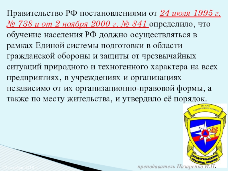 • реализация прав и обязанностей граждан в области защиты от ЧС;