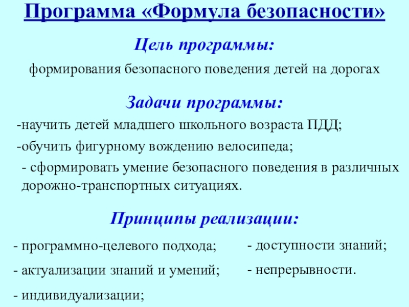 - сформировать умение безопасного поведения в различных дорожно-транспортных ситуациях.