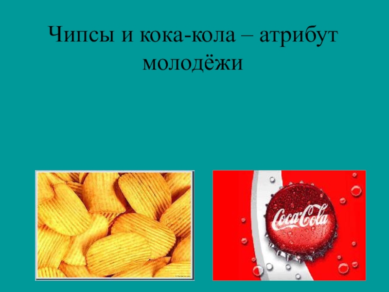 Слайд 2Чипсы и кока-кола – атрибут молодёжи