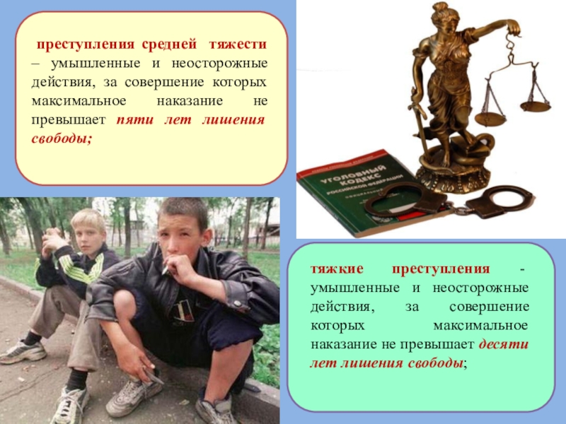 тяжкие преступления - умышленные и неосторожные действия, за совершение которых максимальное наказание не превышает десяти лет лишения свободы;